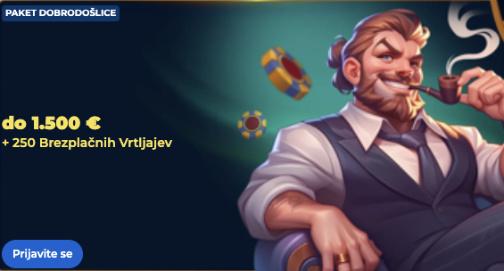 | Dobrodošlični bonus (igralnica) | 100 % do 500 € + 150 brezplačnih vrtljajev |